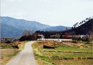 Leaving her uncle's riverside inn in Fushimi and crossing Oi no Saka Pass, Yone (Onisaburo's mother) came back to Anao and took a rest on this bridge - with child by Prince Taruhito of the Arisugawa Clan of the Imperial Family.