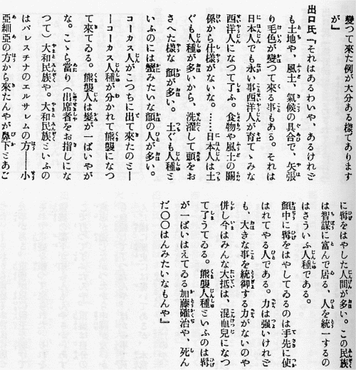 In this particular dialogue, Onisaburo says that the Yamato race, who is believed to have established Japan's earliest unified state in present-day Nara by A.D. 350, came from around Jerusalem in Palestine or from around Asia Minor.