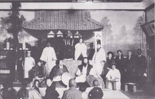Omoto often played Monogatari-based divine dramas on the stage to promote the religious group's holy scripture.