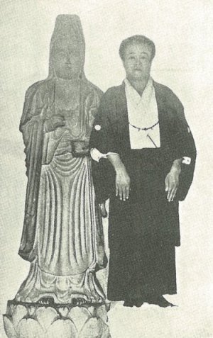 Onisaburo is the same height as the Maitreya statue (excluding the height of the statue's cowl)
