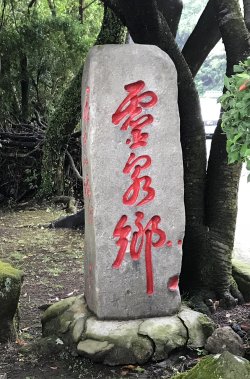 A stone monument inscribed by Onisaburo with the words ' Reisen-kyo (Paradise of Spiritual Fountain)'