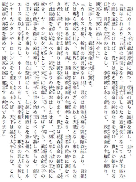 The truth is that the opposite is the case. Tehrusutan, Hohrensu, Yutopiyaru and other important aides suck up to the king, tyrannize over the general public, seek self-interest, and replace the traditional Ananai faith with the Brahman faith, which operates on the principle of "the strong preying on the weak," controls people through ideology and authoritarianism, and disproportionately puts "power over spirit or body." Consequently, public outcries are mounting to the point where a major social upheaval is about to unfold.