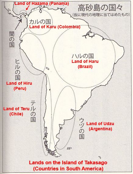 Note: Taiwan is a model of the South American Continent, or its "placenta." Therefore, the Monogatari refers to both Taiwan and South America as "Takasago."