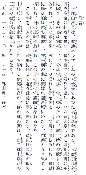 Onisaburo goes on to say that the Reikai Monogatari writes about nothing but Japan. His statement is in line with the notion that Japan is a miniature model of the world.
