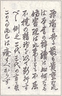 Sumi was an artless calligrapher. Onisaburo admitted that she beat him at calligraphy. Her calligraphic works were so artless and free-spirited that they won great acclaim from noted artists and art critics of the time including Tan'en Ayamura (a calligrapher), Tanigawa Tetsuzoh (a philosopher), Shikoh Munakata (a woodblock artist) and Rosanjin Kita-oji (an artist, potter and epicure). She never learned from any master, and her artworks were an outpouring of her own artless and free-spirited qualities.