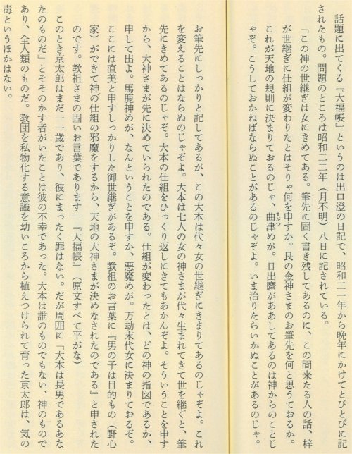 Sumi expressed her anger at the visitors' attempt to change the divine rule in her diary titled the Daifukucho (General Ledger) as follows: