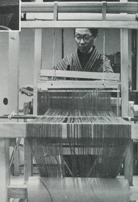 Younger Naomi weaving a textile