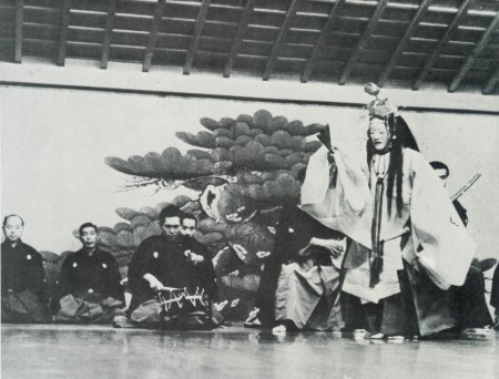 Naohi (right, front) performing noh drama