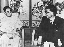 Eiji (right) talking with Premier Zhou Enlai (left) Picture by courtesy of the Omoto Shinto Rengokai