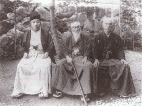 (Left to right) Onisaburo, together with leading right-wing nationalists, Mitsuru Toyama and Ryohei Uchida |