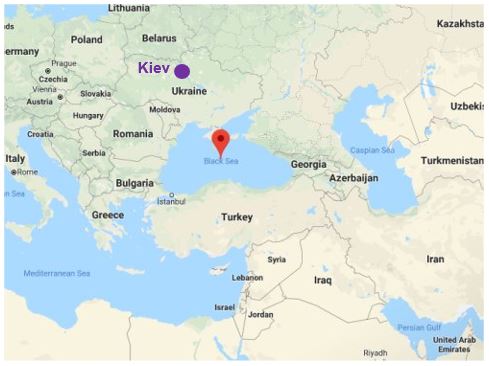 Black Sea (red sign) and Kiev (purple circle)