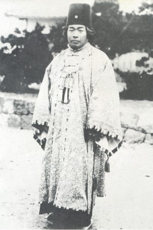 Onisaburo in Omoto missionary robe (March, Taisho 14 [1925])